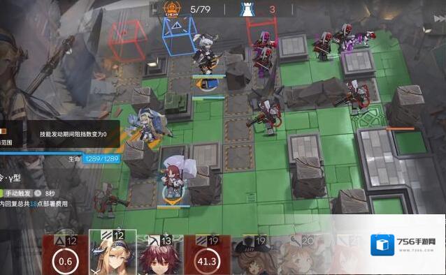 2、这一关我们只有一个点位要防守,先在左下角放上风笛,然后W放到右上角清理石块,差不多清理完了,在我们左上的入口处放上棘刺,然后撤下W;