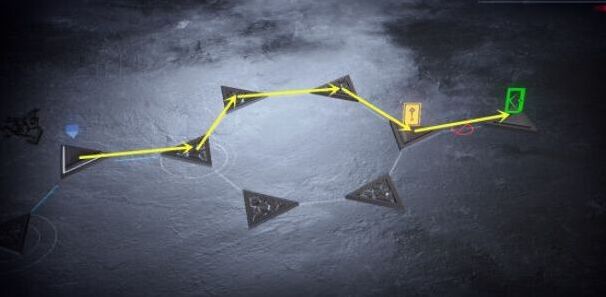 2、进入的第二层以后,我们只需要从初始点按照下图的指引来到黄色图标这里,就能返回到第一层。