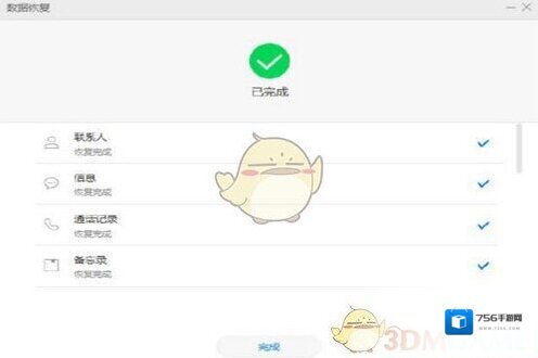 4、用华为手机助手来恢复数据也是这样的两步:在已备份的数据文件中选择要恢复的文件,然后点击恢复,等待结束即可。