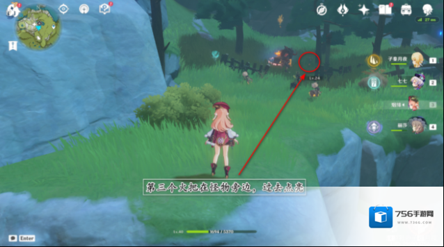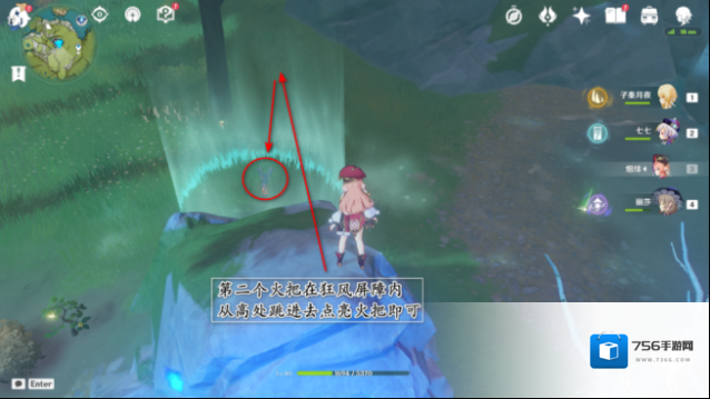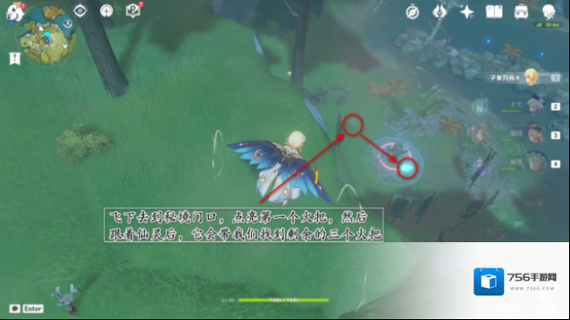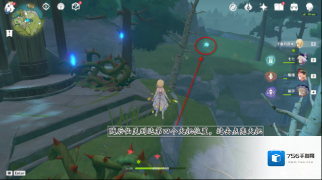 需跟随仙灵,点燃四个火把,解锁元素方碑