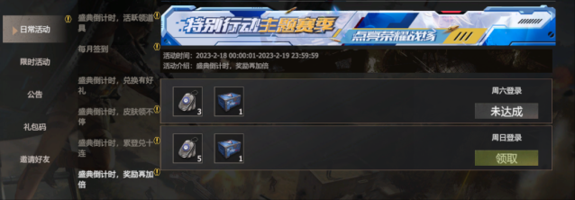 2月18日:天赋点*3+近战皮肤箱1日*1