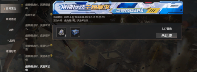 2月17日:天赋点*2+近战皮肤箱1日*1