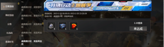 2月20日:天赋点*5+近战皮肤箱1日*1+红包*1