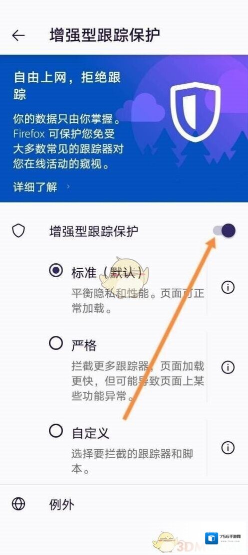《手机火狐浏览器》增强型跟踪保护关闭方法