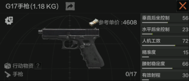 G17是一把相对进阶的手枪,价格往往比同样使用9×19毫米子弹的M9A3高一倍,除了在垂直后坐控制方面的优势外,G17有着更大的可改造空间。你甚至可以给它装配高达50发的超大弹鼓,续航杠杠的。使用这把手枪时,可以考虑搭配AP6.3和7N31这样的高穿透子弹,后者穿透高达40点,在近距离完全足以与其他先锋进行周旋了。