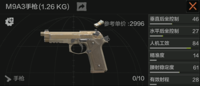 M9A3是使用9×19毫米子弹的手枪中性价比不错的一把。人机工效高、射速快,而且可以通过改枪加装瞄具、消音器,甚至还可以选择17发的大弹匣。大家在打潜入的时候,有时就会默认持有这把手枪,老皮个人还是比较喜欢的。