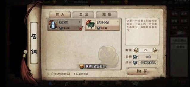 5、接着再在洛阳场景的陈记古玩这里花费20两银子购买获得聚宝盆。