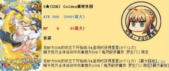 自己的NP以30%累积状态开始战斗 + 登场时获得星星15个(1次) + 我方全体 含候补 在鬼哭酔梦魔京 罗生门的攻击威力提升50%