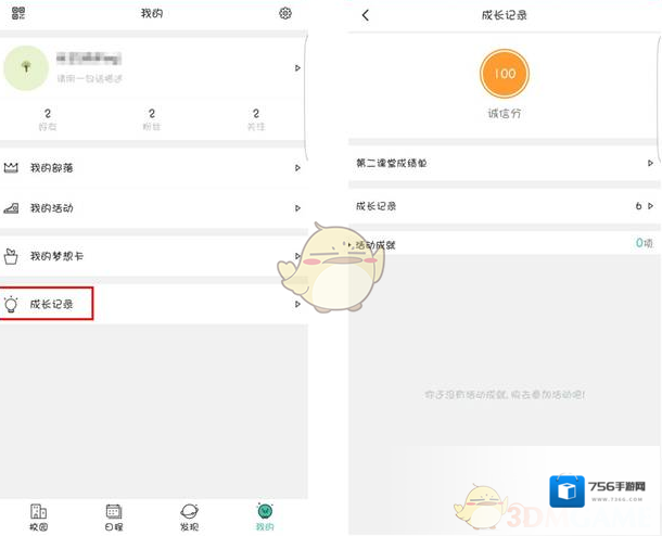5.点击“成长记录”,可以查看第二课堂成绩单、成长记录、活动成就。