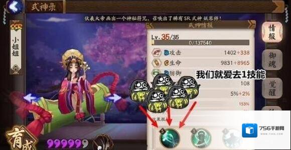 对于非氪金玩家来说,每获得一个黑蛋都不容易,打算喂给SSR式神用来升级的重要技能,结果5发黑蛋一下去,全吃到了1技能上去了!!