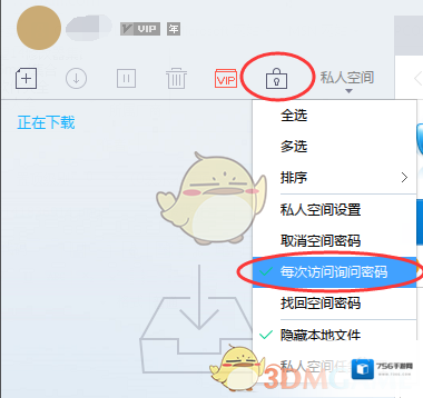 4、修改好密码之后还不算玩,我们继续打开刚才的选择界面,然后勾选上“每次访问询问密码”,这样即便别人登录了我们的账号,没有私人空间密码的话他们也无法查看我们的文件了!