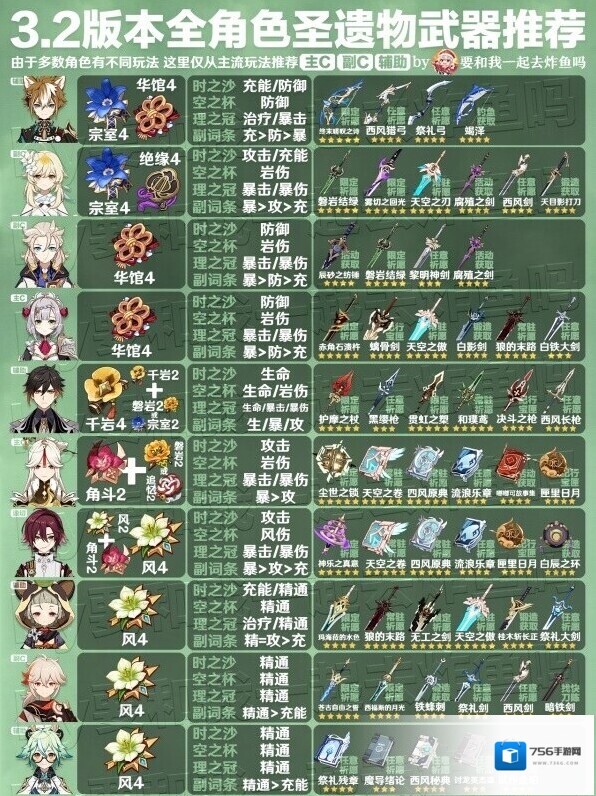 这个不是角色武器强度排行榜,为了保证每个人都能找到可以用的武器优先推荐最合适的武器,然后尽量按照 专武 常驻五星 祈愿 锻造 活动 大月卡 这个获取顺序给每个角色推荐主流玩法武器。