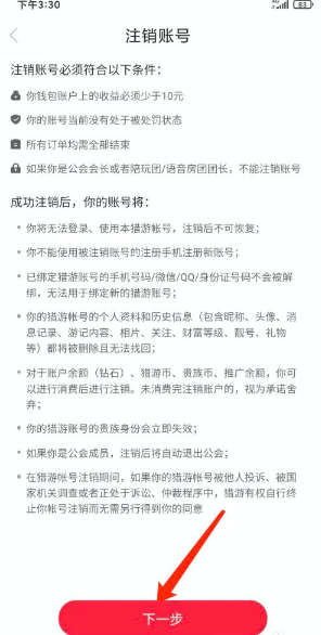 6、即可在手机猎游app中实现注销当前账号功能操作。