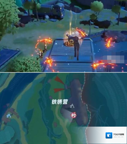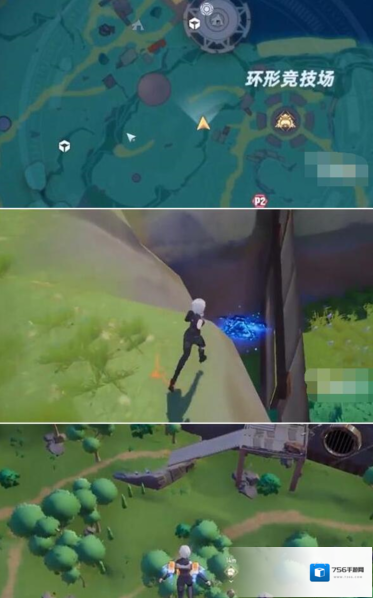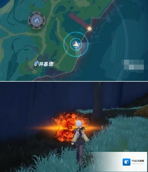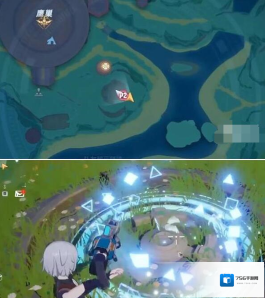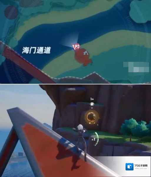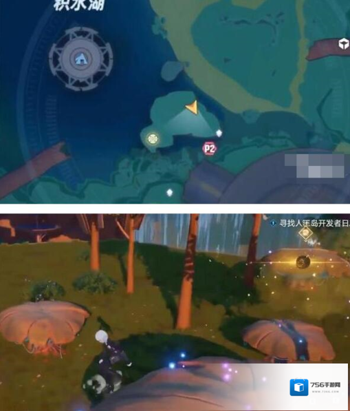 7、下图位置有两个金核,如下图,找到蓝色传送点,可以传送到空到中,一个在旁边的空中,另一个在吃吃花里面。