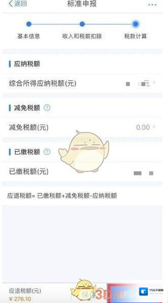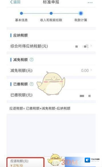 7、数据系统将自动计算您本年度综合所得应补(退)税额。