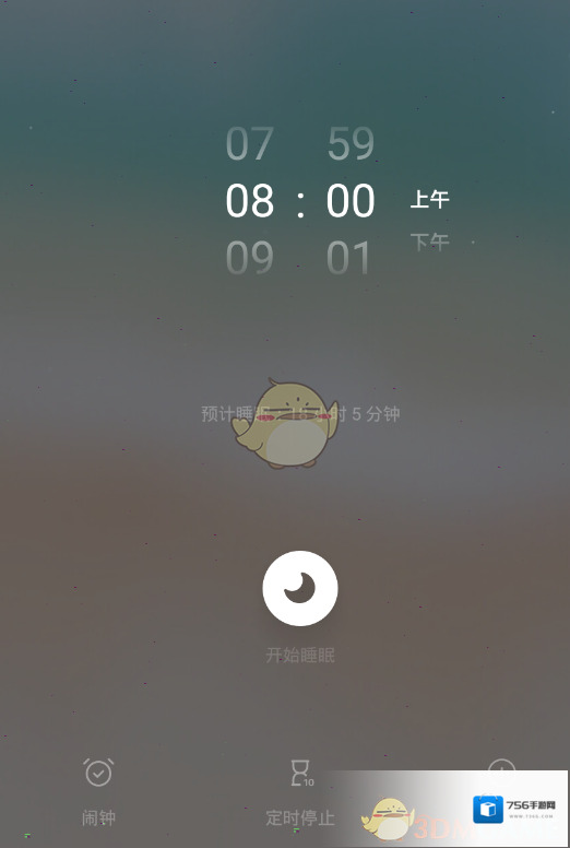 1、进入软件主界面,选择好你的白噪音,点击下方的睡眠