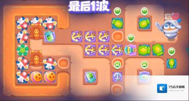 6、最后一波的阵容如下图所示,我们可以参考一下,然后有钱就建炮塔和升级炮塔就可以完成本关。