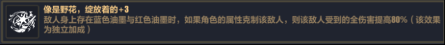 2)在面对生物属性的敌人时,先蹭闪触发蓝染色,再用武器主动上红染色触发增幅刻印中的80%独立易伤;