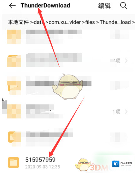 5、进入ThunderDownload文件夹,找到由数字组成的文件夹,如图,打开。