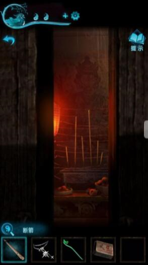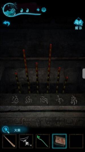 8、我们到车的位置,按照顺序来点香,点完即可获得字迹,然后我们可以解开山洞前石狮子下的机关,即可获得一把钥匙。