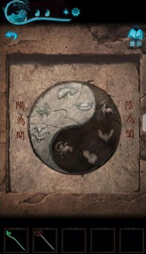 15、我们回前面将阴阳玉钳在上面,黑白相反即可打开石壁,记住图案,再打开里面柜子,即可找到龟壳。