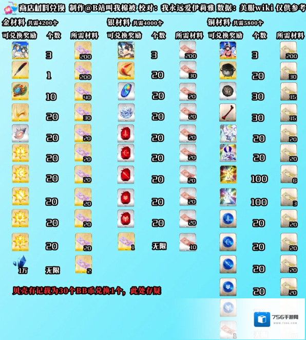 商店奖励需要副本掉落物来兑换,活动副本中掉落金银铜三种材料,分别对应「BB$纸币」「耳朵$纸币」「吉尔$纸币」。