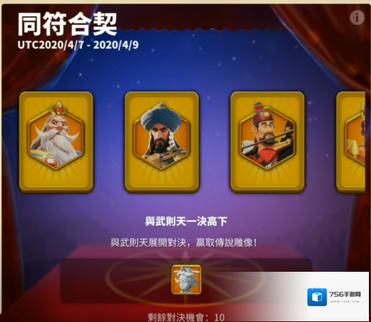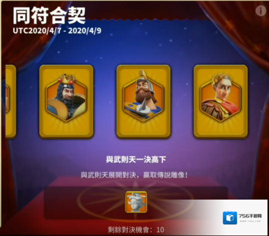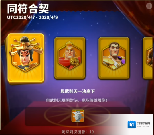 你可以获得在同符合契中出现的任意统帅,每一局翻牌的机会有上限,连续翻开两张一样的可以获取对应奖励,随时放弃翻牌重置进度,随时放弃翻拍英雄选择另一位英雄
