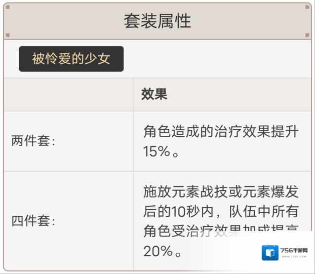 少女的套装效果为释放元素爆发后,10秒内队伍中所有角色受治疗量提升20%,可以进一步提升班尼特的奶量。