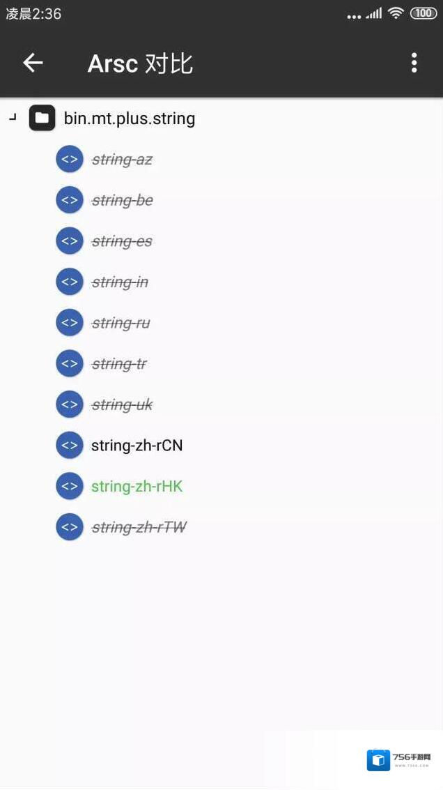 选中两个 APK 文件或者两个 ARSC 文件长按即可进行 ARSC 对比。