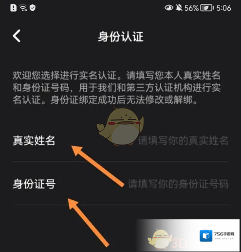4、然后输入姓名和身份证号码即可进行身份认证。