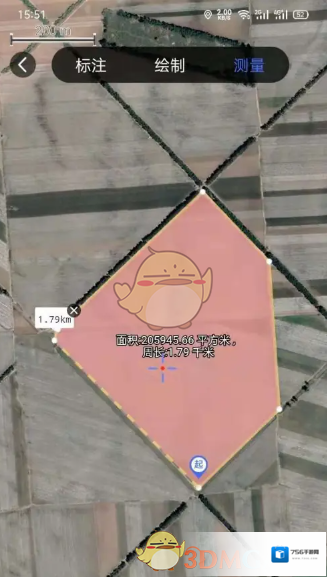 4、出现如下图,然后开始画你想要测量的区域,画完就能看到这块地方的面积和周长,如需保存点击完成绘制它就会自动保存。