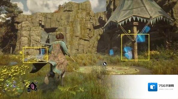 来到下图位置,在机关处使用香锦葵,开始试炼。