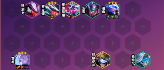 雷克顿、艾希、潘森、希维尔先上三星。卡位置了其他牌可以先丢。