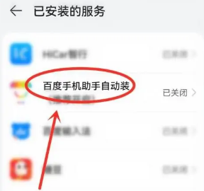 4、进入已安装的服务界面,找到“百度手机助手自动装”设置项。