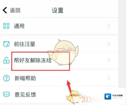 4、在设置功能下点击帮好友解除冻结选项栏。