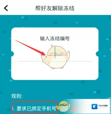 5、绑定手机号后输入好友的冻结编号。