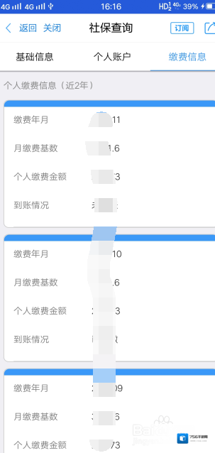 在这里,详细的显示的历年来的个人每月缴费情况,包括金额和基本工资等。