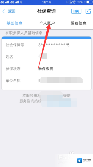 默认显示自己的相关社保信息,点击个人缴费标签。