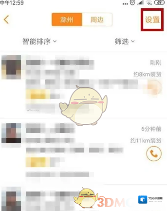 5、进入到该路线的货源消息界面后点击右上角的设置选项。