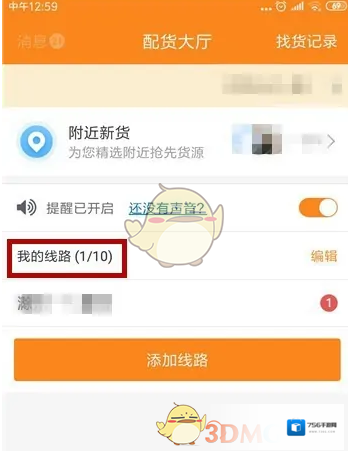 4、或者我们可以选择关闭某一条常用路线的货源提醒,在我的路线里点击打开要关闭货源提醒的路线。
