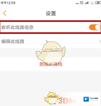 6、接下来在设置界面中可看到收听此线路信息,我们点击关闭这个功能。