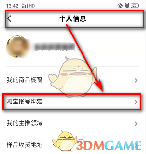 4、选择淘宝账号绑定菜单;