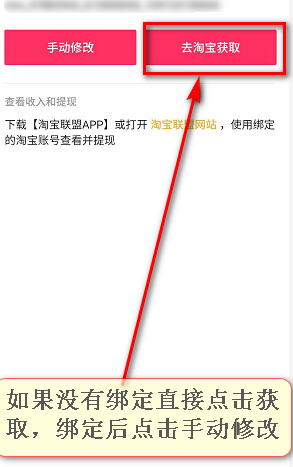 5、进入到淘宝账号绑定中,点击去淘宝获取;
