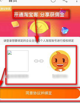 6、获取时,会跳转到淘宝客户端(需要安装淘宝app),点击同意协议并绑定;