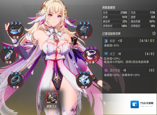 右三主属性,我推荐2命中效果+1生命加成,保证技能附加上debuff的情况下增加一点生存能力,下面是芙蕾雅的属性参考: