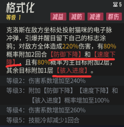 涌流提升生成能力,讯影提升速度,凝视保证长线战斗技能附加debuff概率提升