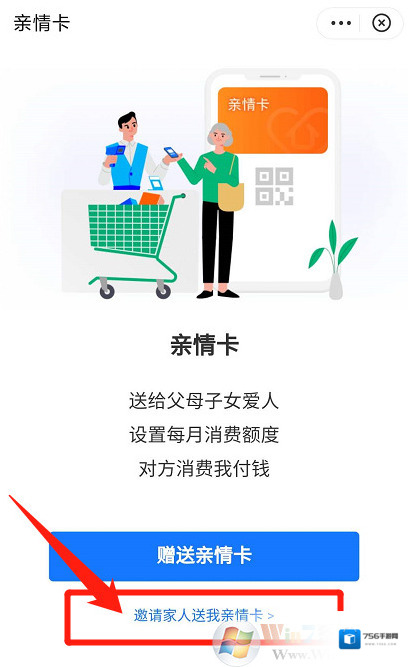 方法二1、也可以选择“邀请家人送我亲情卡”;