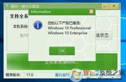 win10系统激活图文教程方法二: 如方法一无法正常激活系统,那么我们就应该考虑使用专业的win10激活软件了win10激活软件下载:暴风Win10激活工具|暴风激活一键永久激活Win10 V17.0绿色版