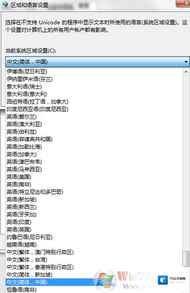8、进入设置界面后,将当前系统区域设置为“中文”。