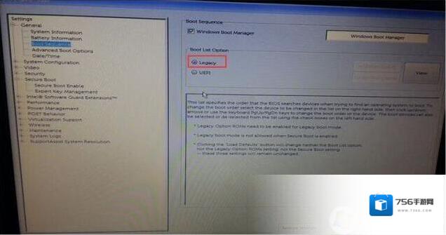 4、将BOOT Sequence右边选项的UEFI改成Legacy,点击下方的保存,如下图所示;(保存后电脑会重新启动)